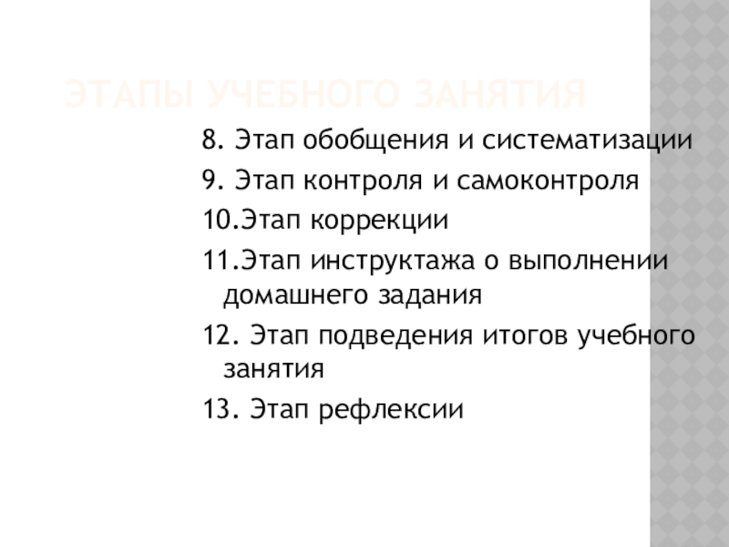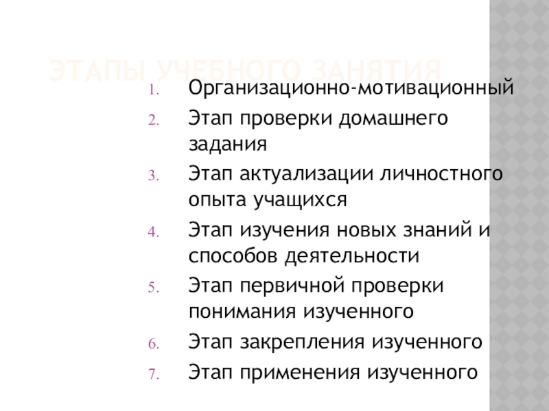 Слайд 2ЭТАПЫ УЧЕБНОГО ЗАНЯТИЯ