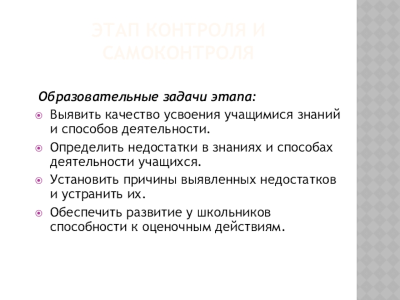 Слайд 22ЭТАП КОНТРОЛЯ И САМОКОНТРОЛЯ