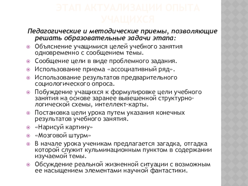 Слайд 15ЭТАП АКТУАЛИЗАЦИИ ОПЫТА УЧАЩИХСЯ
