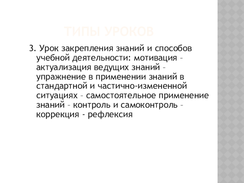 3. Урок закрепления знаний и способов учебной деятельности: мотивация –