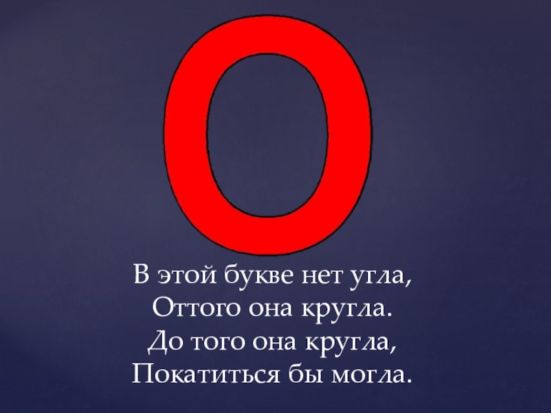 Слайд 9В этой букве нет угла, Оттого она кругла. До того она кругла, Покатиться бы