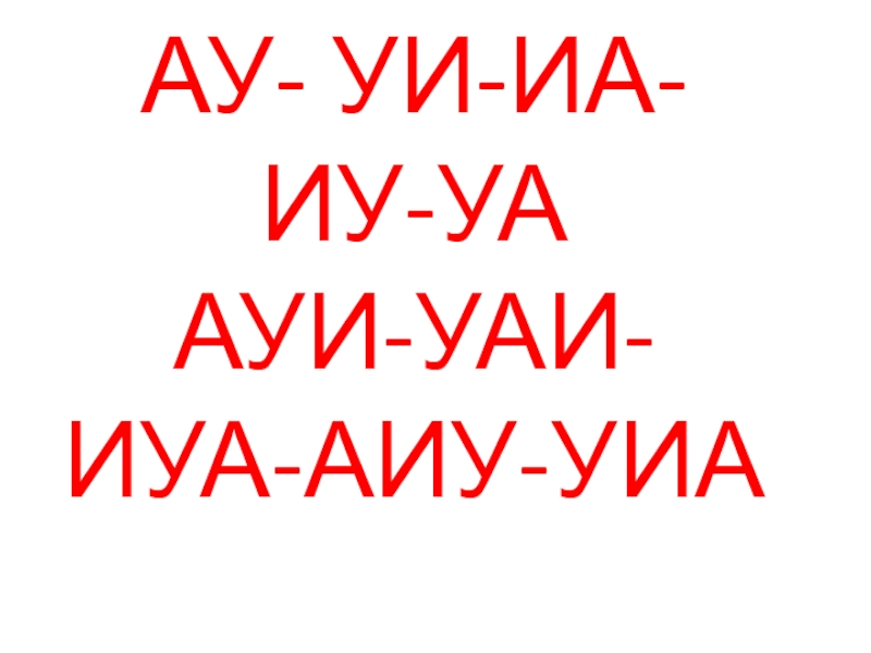Слайд 5АУ- УИ-ИА-ИУ-УА АУИ-УАИ-ИУА-АИУ-УИА
