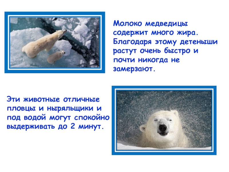 Эти животные отличные пловцы и ныряльщики и под водой могут спокойно выдерживать до 2 минут.