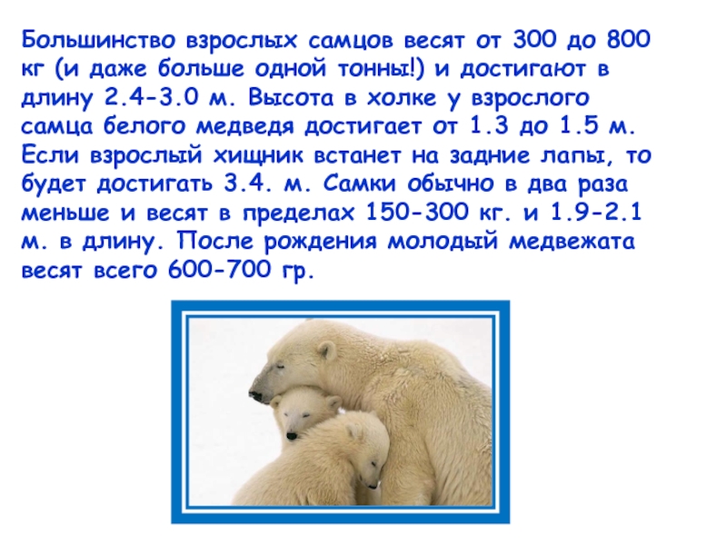 В основной рацион питания белого медведя входят тюлени. Охотятся мишки в одиночку. Через прорубь во льдах они как шпионы проникают ближе к жертве, которые беззаботно отдыхают на льдине. На такой охоте поведение медведя можно сравнить с кошачьим, такими как например лев или тигр.