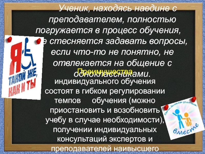 Слайд 5 Ученик, находясь наедине с преподавателем, полностью погружается в процесс обучения, не