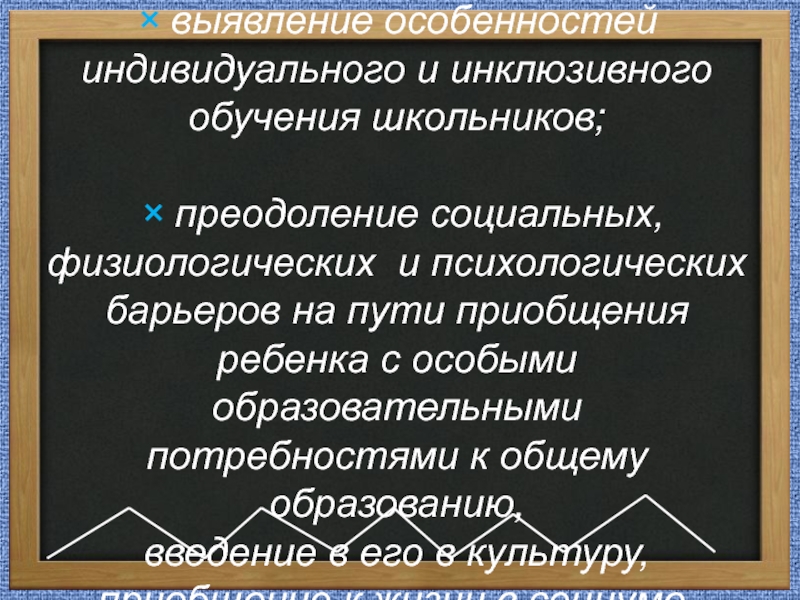 × выявление особенностей индивидуального и инклюзивного обучения школьников;