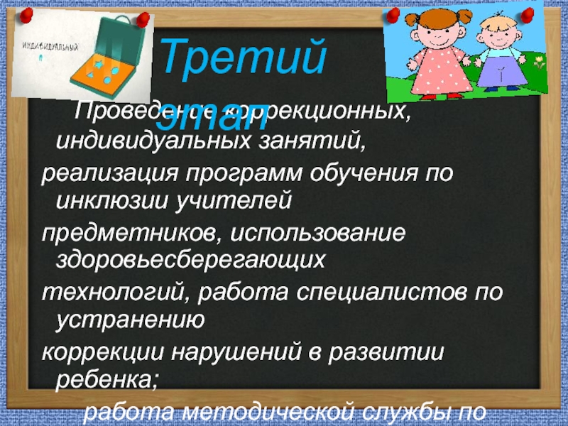 Слайд 11 Проведение коррекционных, индивидуальных занятий,