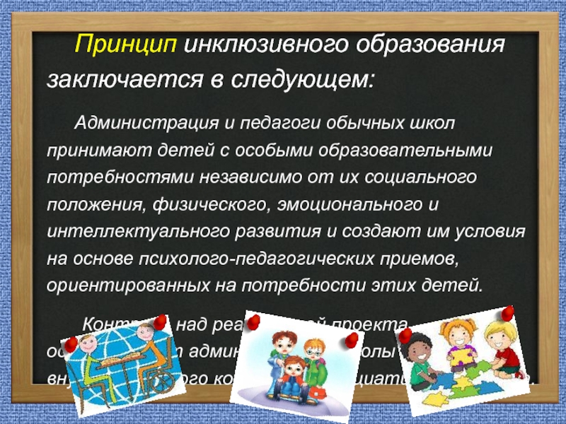 Слайд 8Принцип инклюзивного образования заключается в следующем: