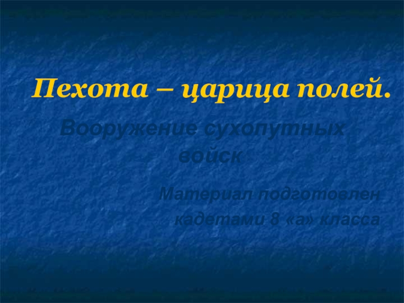 Пехота – царица полей.Вооружение сухопутных войскМатериал подготовлен кадетами 8 «а» класса