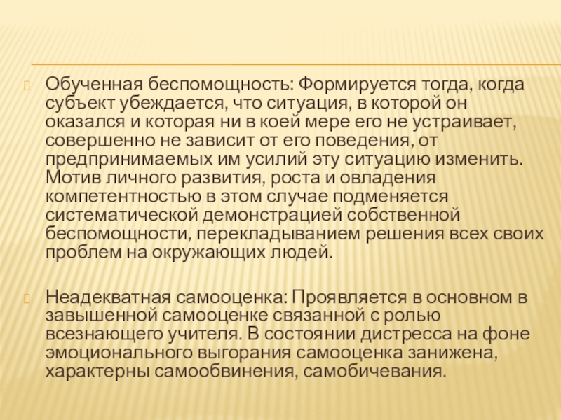 Слайд 28Обученная беспомощность: Формируется тогда, когда субъект убеждается, что ситуация, в которой