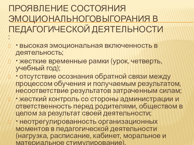 Слайд 18проявление состояния эмоциональноговыгорания в педагогической деятельности