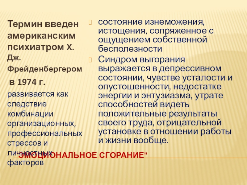 как следствие комбинации организационных, профессиональных стрессов и личностных факторов