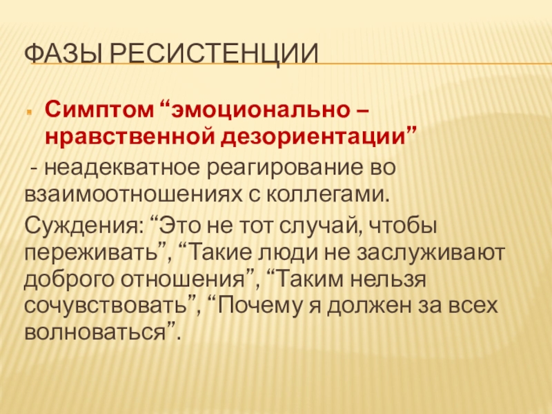 Суждения: “Это не тот случай, чтобы переживать”, “Такие люди не заслуживают доброго отношения”, “Таким нельзя сочувствовать”, “Почему я должен за всех волноваться”.