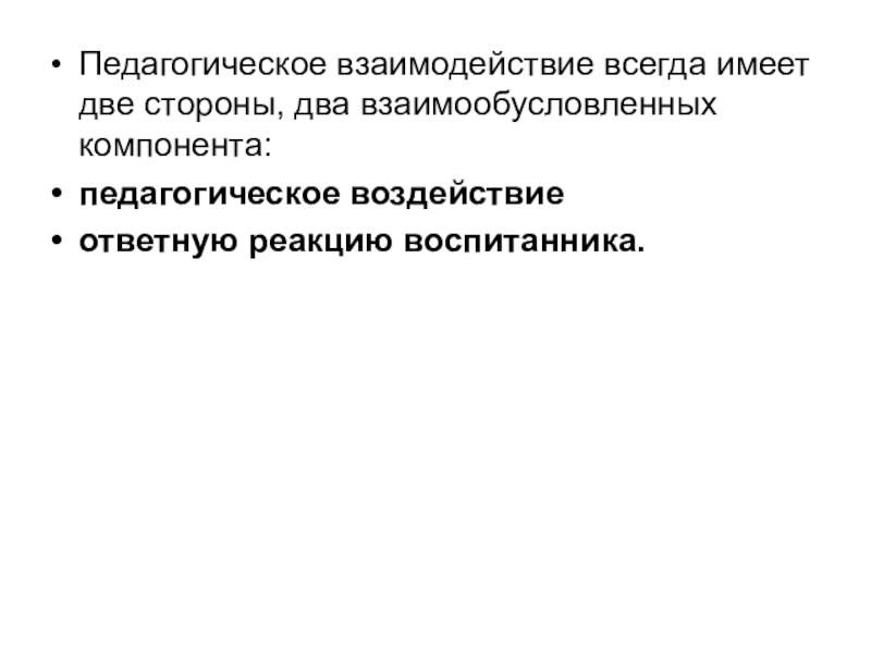 Слайд 27Педагогическое взаимодействие всегда имеет две стороны, два взаимообусловленных компонента: