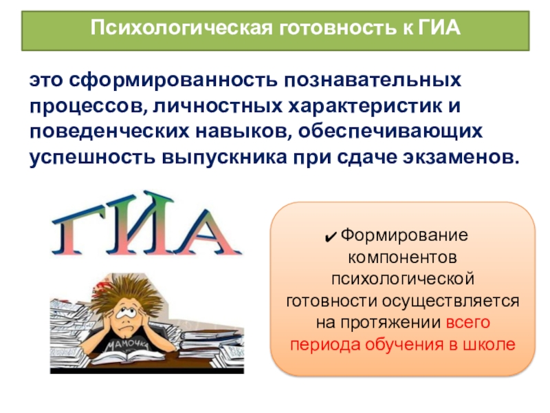 Формирование компонентов психологической готовности осуществляется на протяжении всего периода обучения в школе