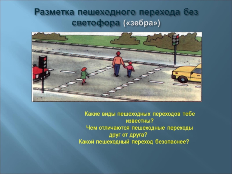 Слайд 6Разметка пешеходного перехода без светофора («зебра»)