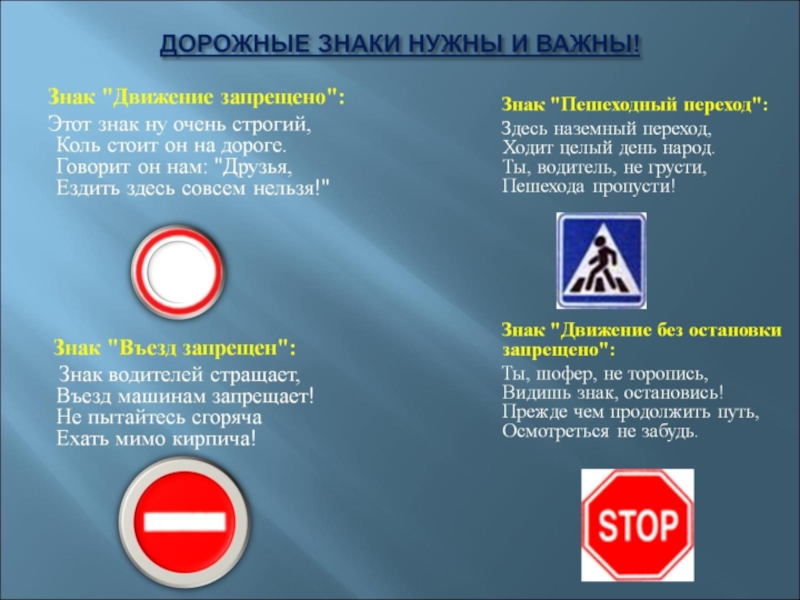 Слайд 20ДОРОЖНЫЕ ЗНАКИ НУЖНЫ И ВАЖНЫ!