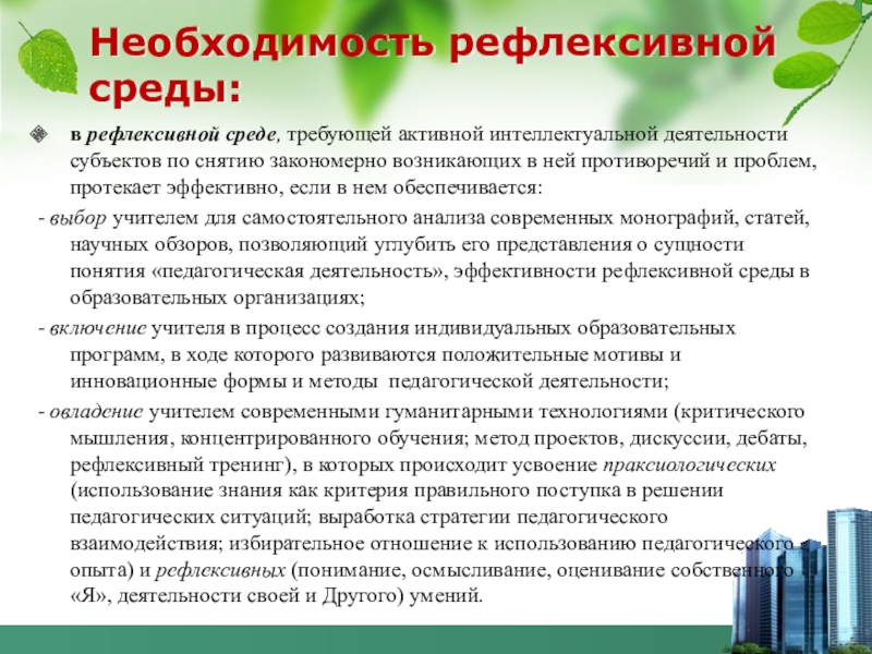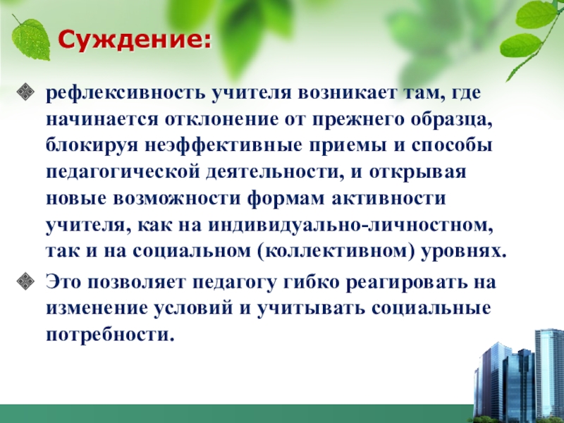 7. Профессиональность мастерства учителя, организующего рефлексивную деятельность.