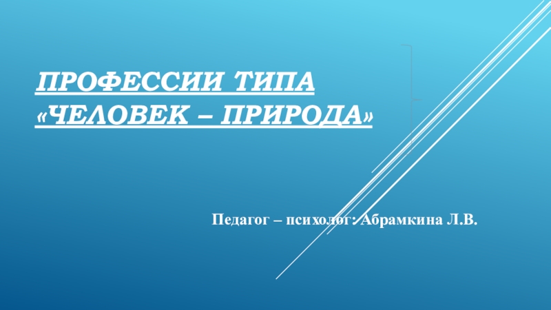 профессии типа «Человек – Природа» Педагог – психолог: Абрамкина Л.В.
