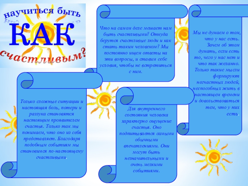 Только сложные ситуации и настоящая боль, потери и разлука становятся настоящим проявителем счастья. Только так мы понимаем, что оно из себя представляет. Благодаря подобным событиям мы становимся по-настоящему счастливыми.