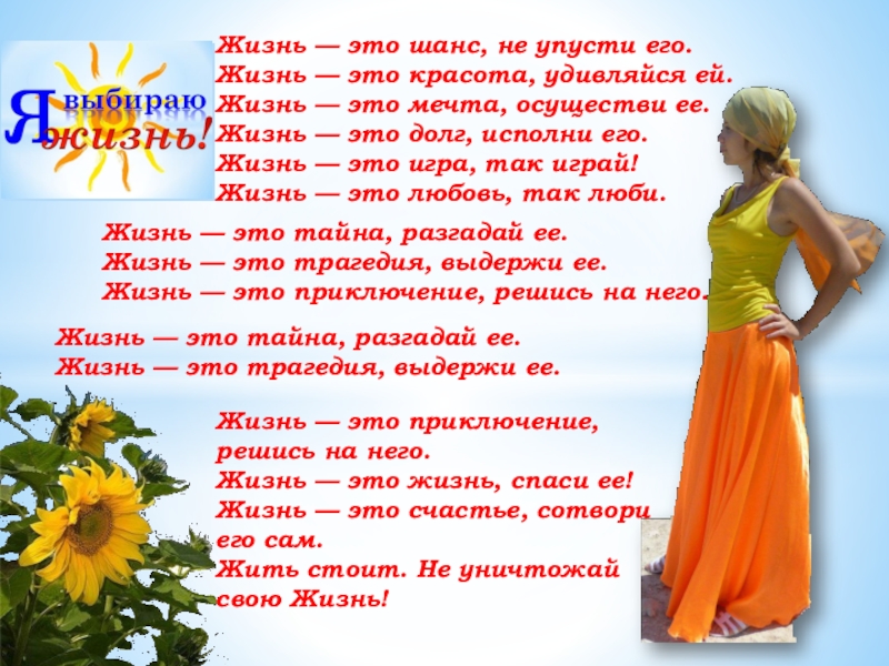 Мы можем предвидеть препятствия, жизнь дает возможность совершенствоваться.