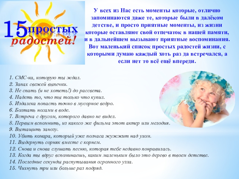 13. Вспоминай почаще о комплиментах, которые тебе говорят. Забывай злобные высказывания и насмешки.