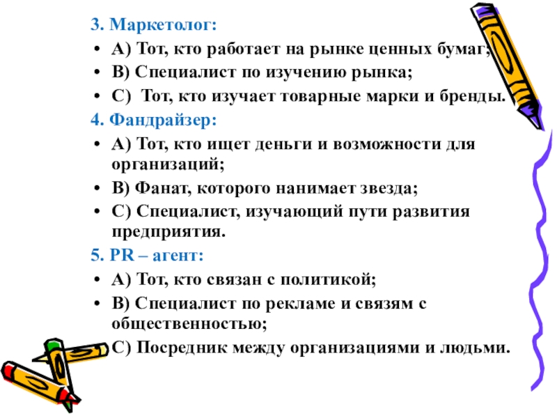 появляется много новых профессий. Проверьте себя, знаете ли вы их. Только один ответ наиболее точно описывает профессию.