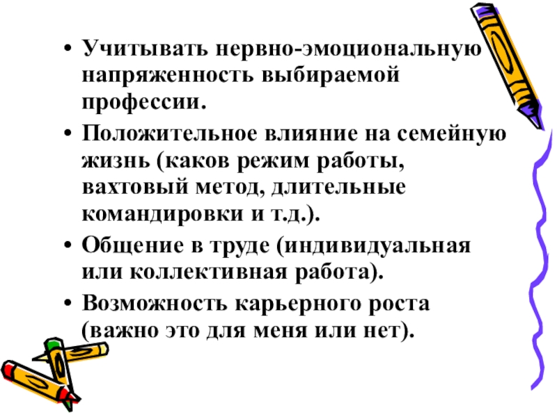Учитывать нервно-эмоциональную напряженность выбираемой профессии.