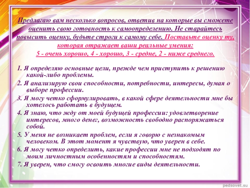 6. Я могу четко определить, какие профессии мне не подходят по моим личностным особенностям и способностям.