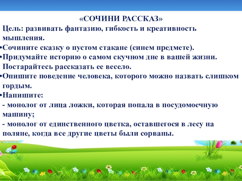 Цель: развивать фантазию, гибкость и креативность мышления.