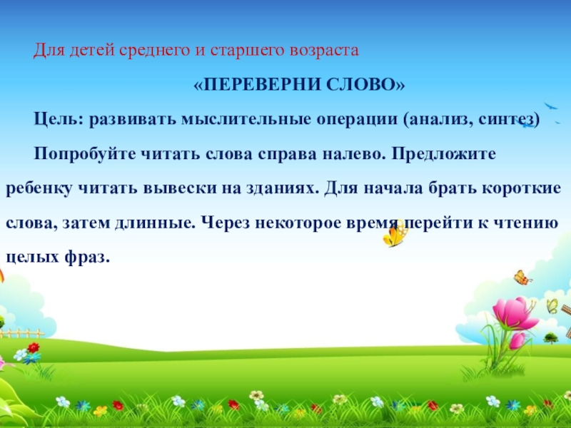 Попробуйте читать слова справа налево. Предложите ребенку читать вывески на зданиях. Для начала брать короткие слова, затем длинные. Через некоторое время перейти к чтению целых фраз.