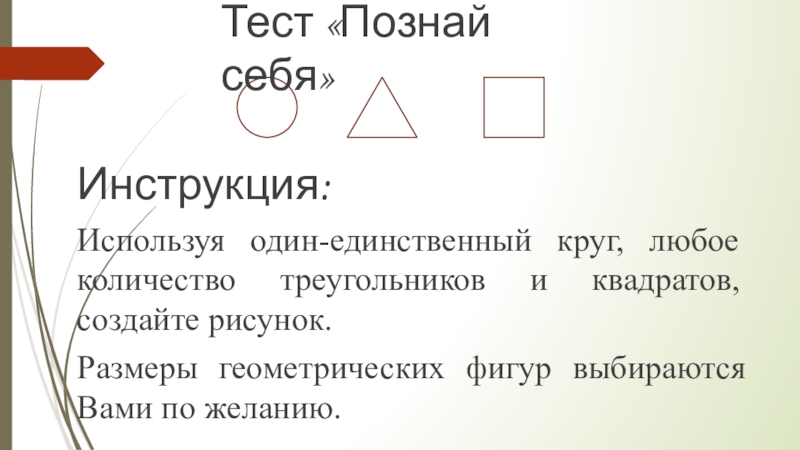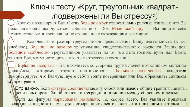 Слайд 4Ключ к тесту «Круг, треугольник, квадрат»