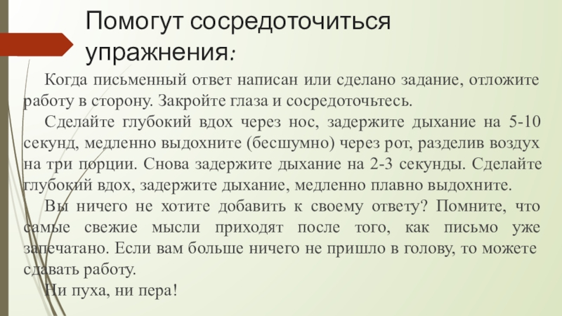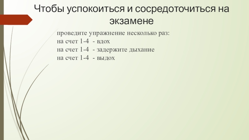 Слайд 14Чтобы успокоиться и сосредоточиться на экзамене