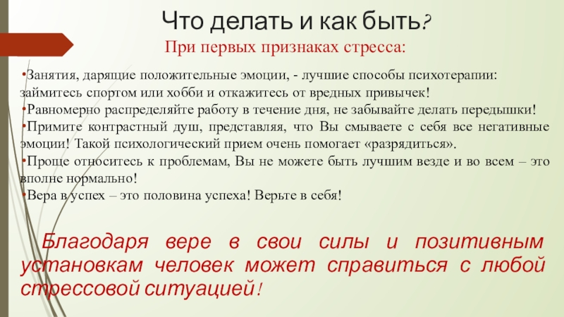 Благодаря вере в свои силы и позитивным установкам человек может справиться с любой стрессовой ситуацией!