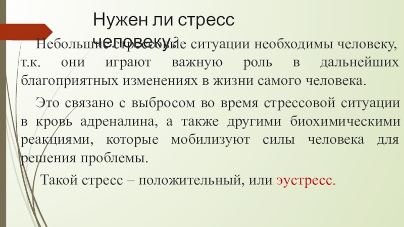 Небольшие стрессовые ситуации необходимы человеку, т.к. они играют