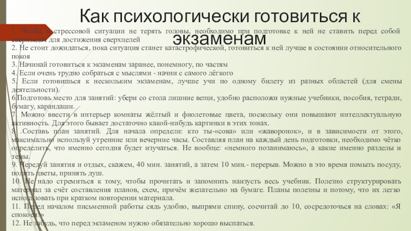 12. Не забудь, что перед экзаменом нужно обязательно хорошо выспаться.