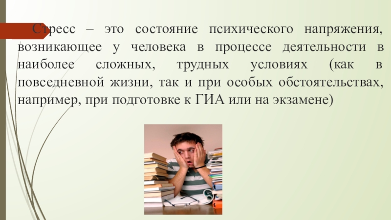 Стресс – это состояние психического напряжения, возникающее у человека в процессе