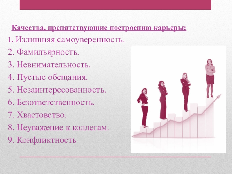 Слайд 15 Качества, препятствующие построению карьеры:
