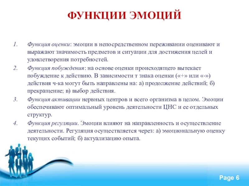 Слайд 6ФУНКЦИИ ЭМОЦИЙ
