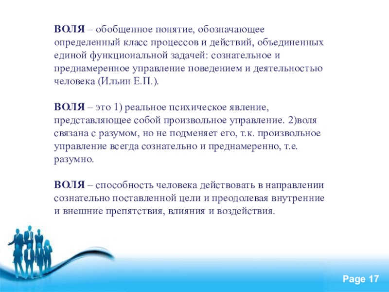 Слайд 17ВОЛЯ – обобщенное понятие, обозначающее определенный класс процессов и действий, объединенных