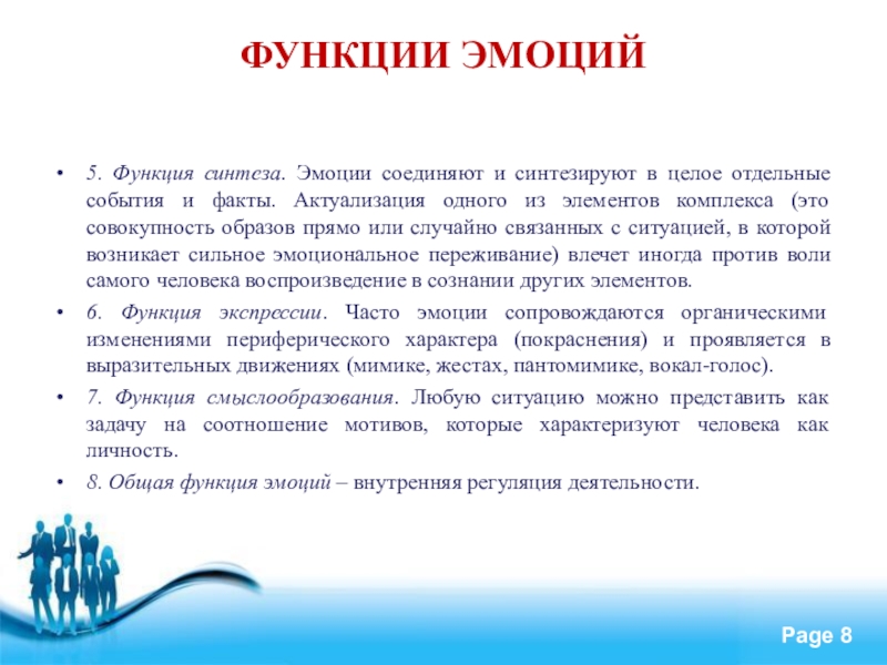 Слайд 8ФУНКЦИИ ЭМОЦИЙ