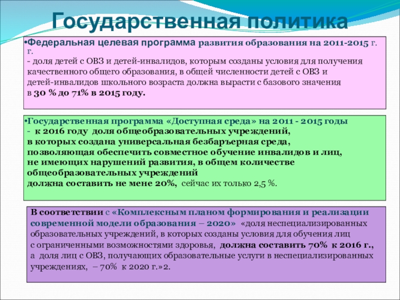 с ограниченными возможностями здоровья, должна составить 70% к 2016 г.,