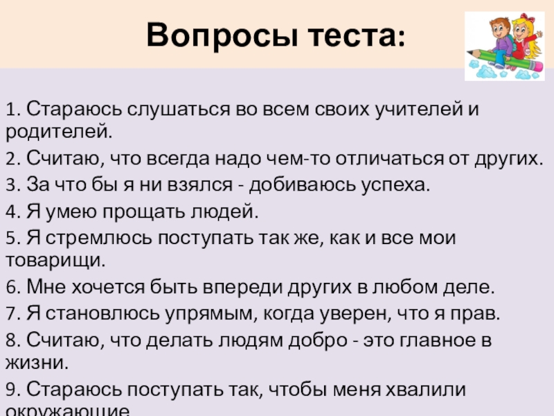 Слайд 4Вопросы теста: