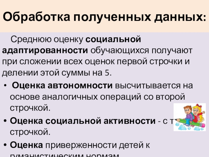 Среднюю оценку социальной адаптированности обучающихся получают при сложении