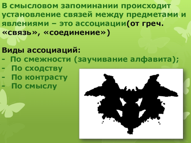 Слайд 5В смысловом запоминании происходит установление связей между предметами и явлениями –