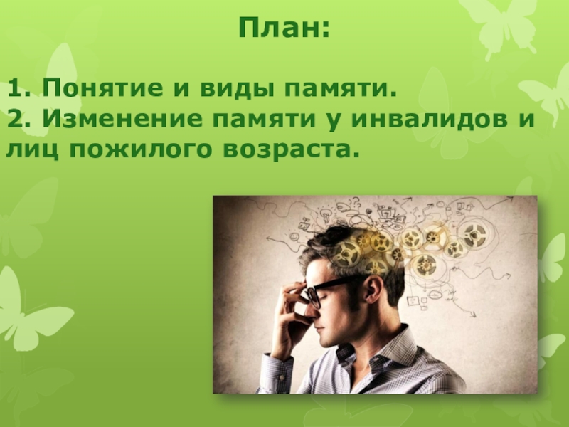 Они тесно взаимодействуют друг с другом через различные виды деятельности. На протяжении жизни память человека не остается стабильной. Она изменяется с возрастом в разной степени. В пожилом возрасте память начинает слабеть. Это происходит из-за переутомления. Среди инвалидов жалобы на снижение