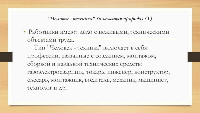 Слайд 8"Человек - техника" (и неживая природа) (Т)