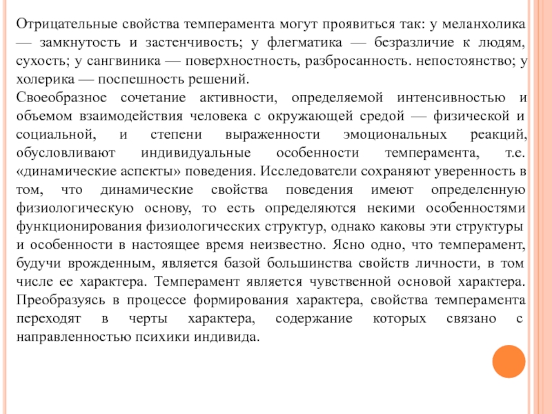 Слайд 12Отрицательные свойства темперамента могут проявиться так: у меланхолика — замкнутость и