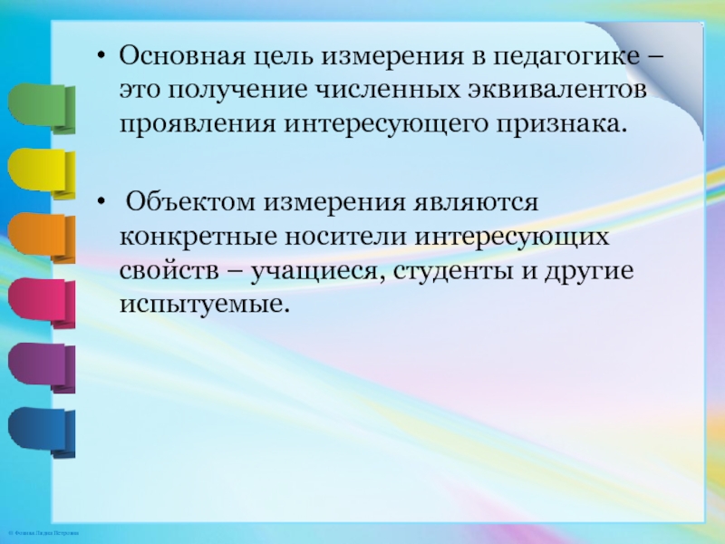 измерения являются конкретные носители интересующих свойств – учащиеся, студенты и другие испытуемые.