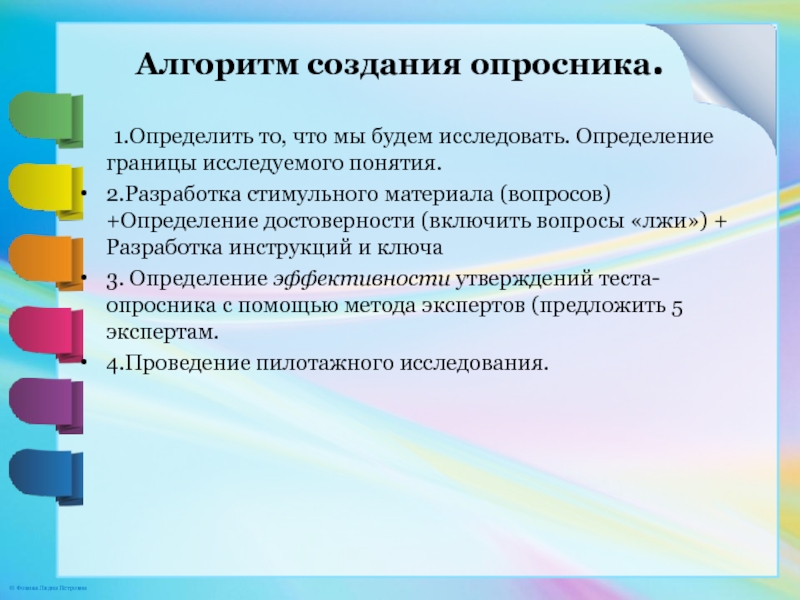 2.Разработка стимульного материала (вопросов) +Определение достоверности (включить вопросы «лжи») + Разработка инструкций и ключа